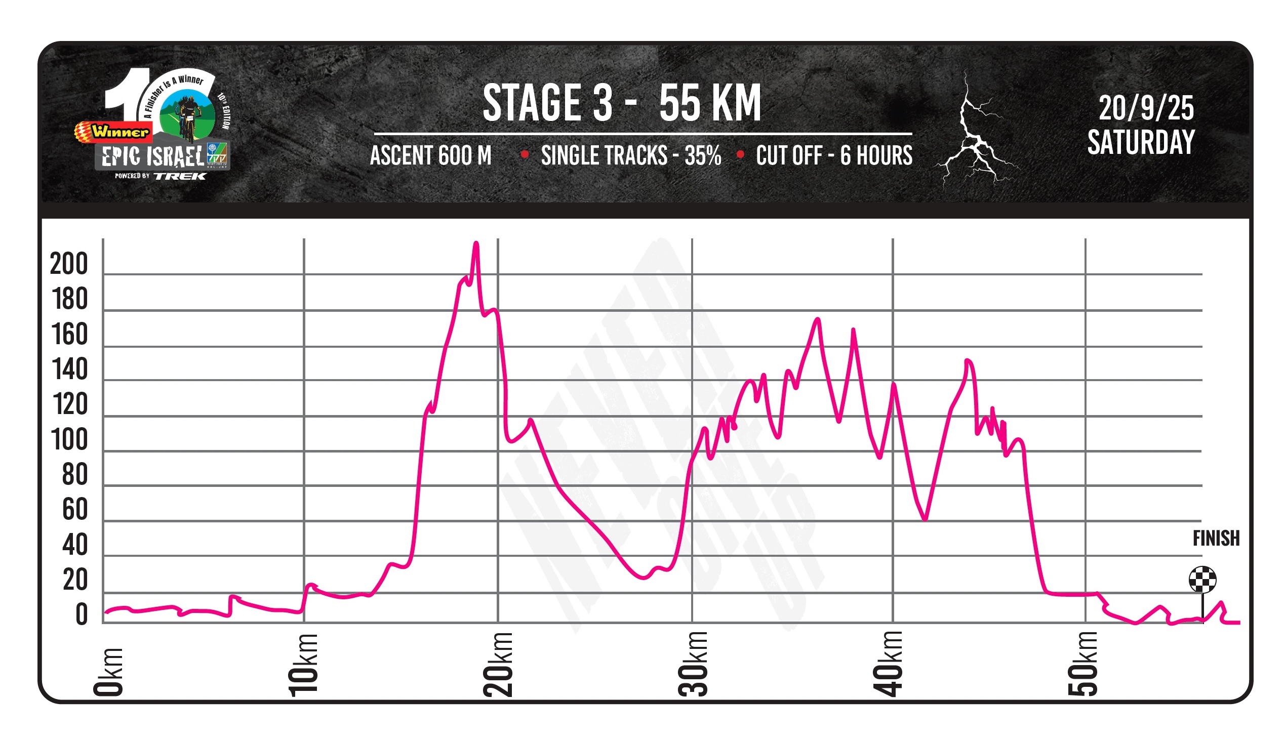 אורך המסלול - 55 ק״מ עם 600 מטר טיפוס
